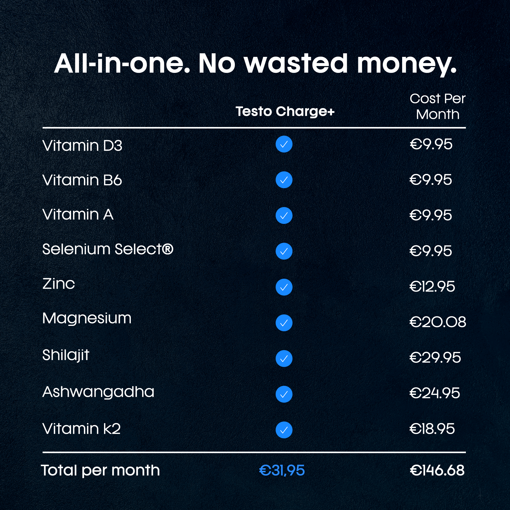 Testo Charge is a mixture to support healthy T levels. Youtake 3 capsules daily after the first meal. Combine the supplement with proper diet, sleep and exercise.