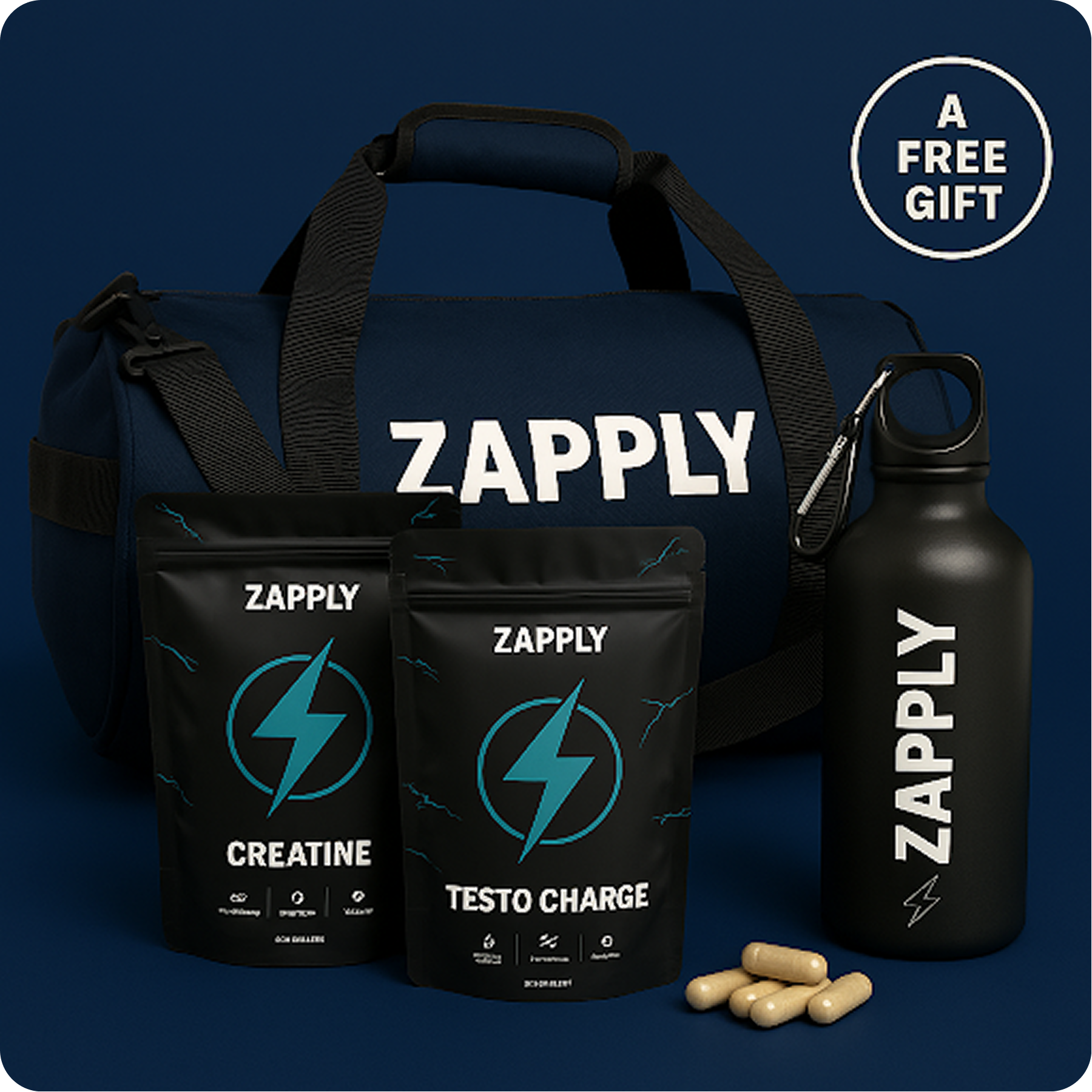 Use the Zapply Box to keep everything organized. Add TestoCoffee in the morning or Dreamfuel before bed for extra support. Pack your Gymbag and Bottle to stay consistent on the go.
