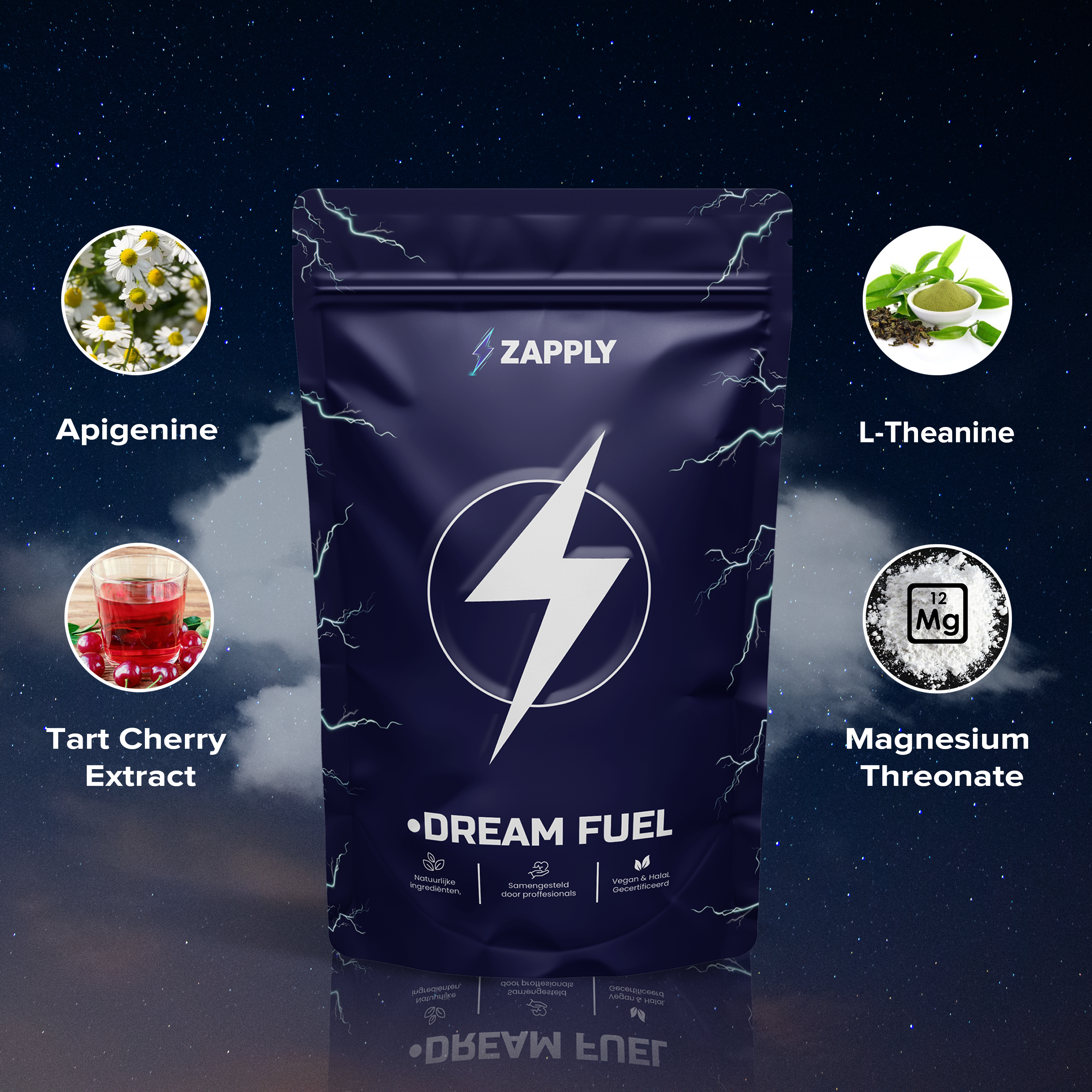 Dream Fuel is a carefully developed formula for use in the evening. The combination of natural ingredients fits perfectly into a relaxing evening routine. Dream Fuel is tasteless, vegan, and easy to take before bed.